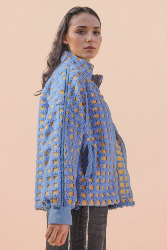 A Blue Moment Checkered Fleece Jacket