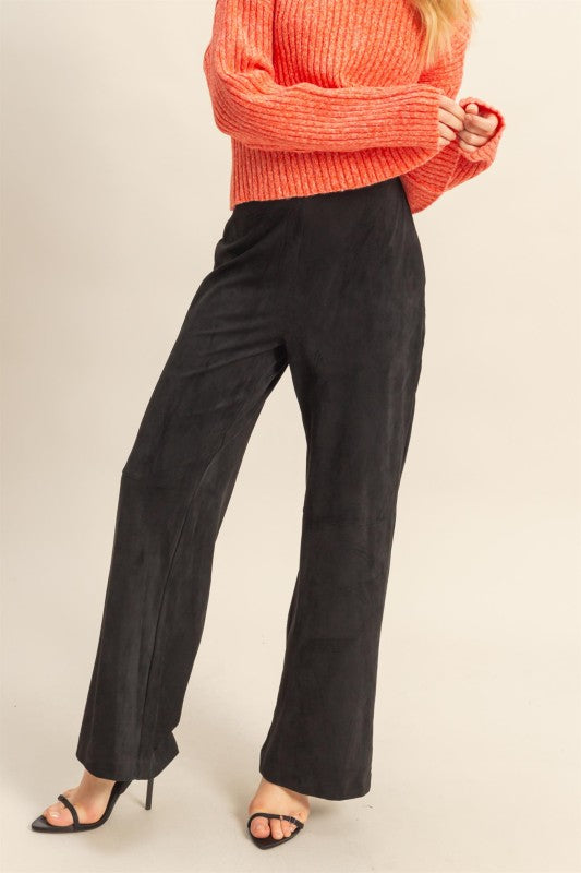 Embrace effortless style with these minimalist tailored pants, meticulously designed for a sleek silhouette that transcends seasonal trends. Featuring a flowy suede touch, these pants are ideal for both a relaxed day out or a smart-casual office environment.