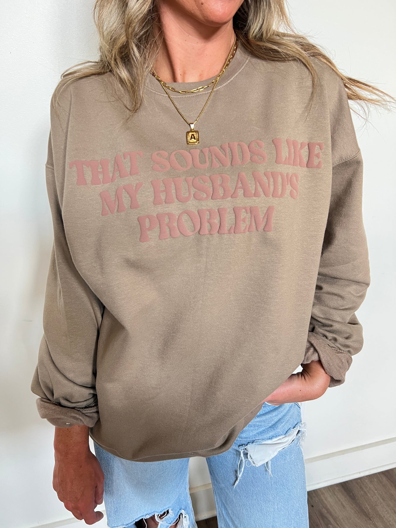 -Midweight, fleece lined inside and a soft, durable finish-"THAT SOUNDS LIKE MY HUSBAND'S PROBLEM" Raised Bubble Print