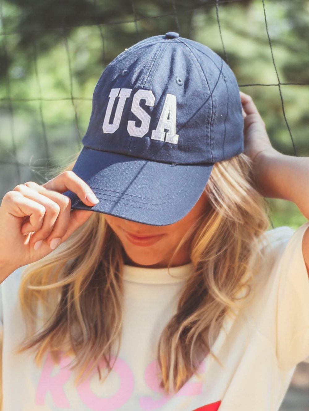Can you hear us chanting the USA! USA! USA! chant from here? This navy hat with white block lettering will be a summer staple that can transition to all seasons throughout the year. If you aren't the type to go full out for a holiday party but want a subtle statement, you need this hat!