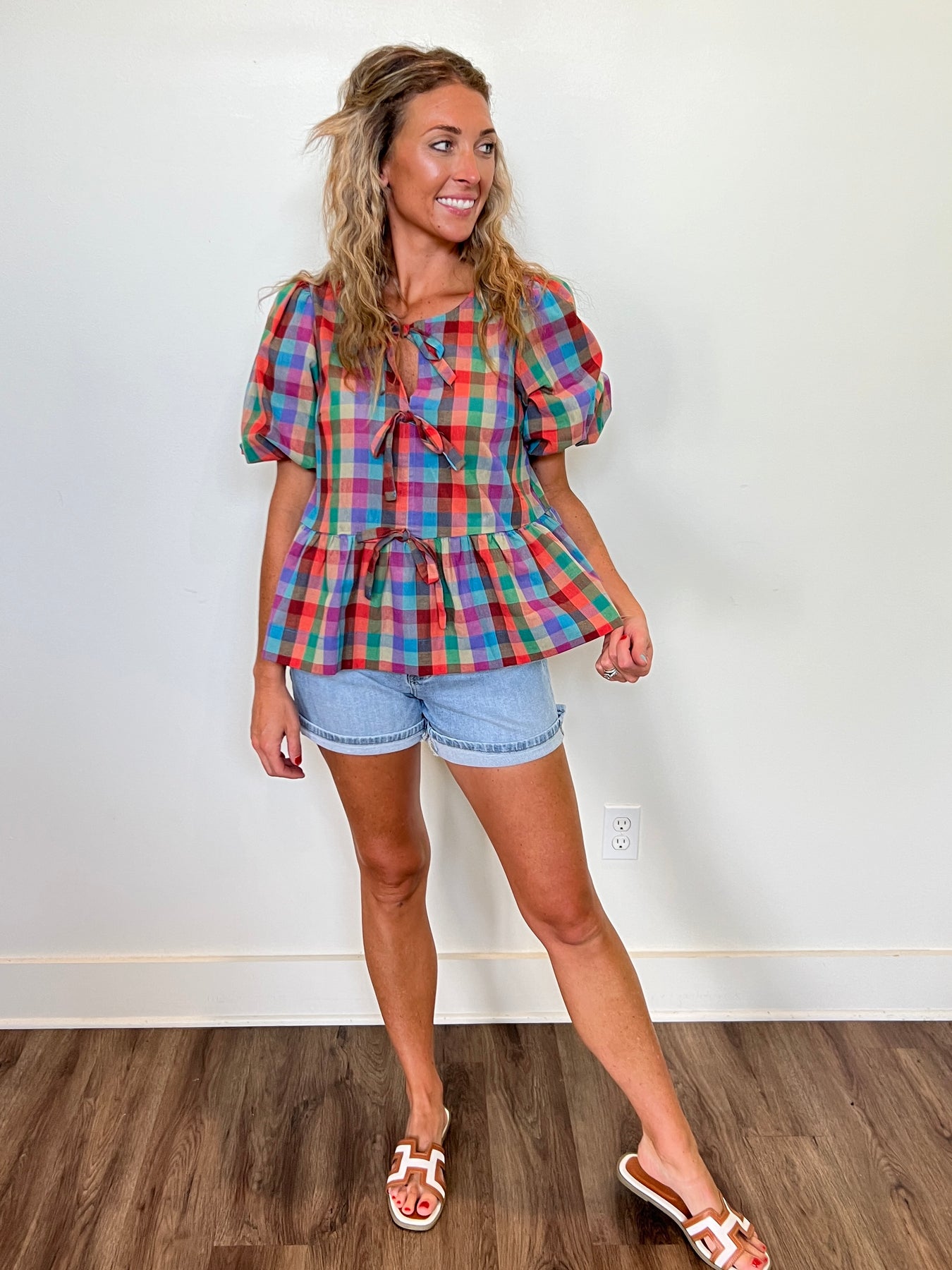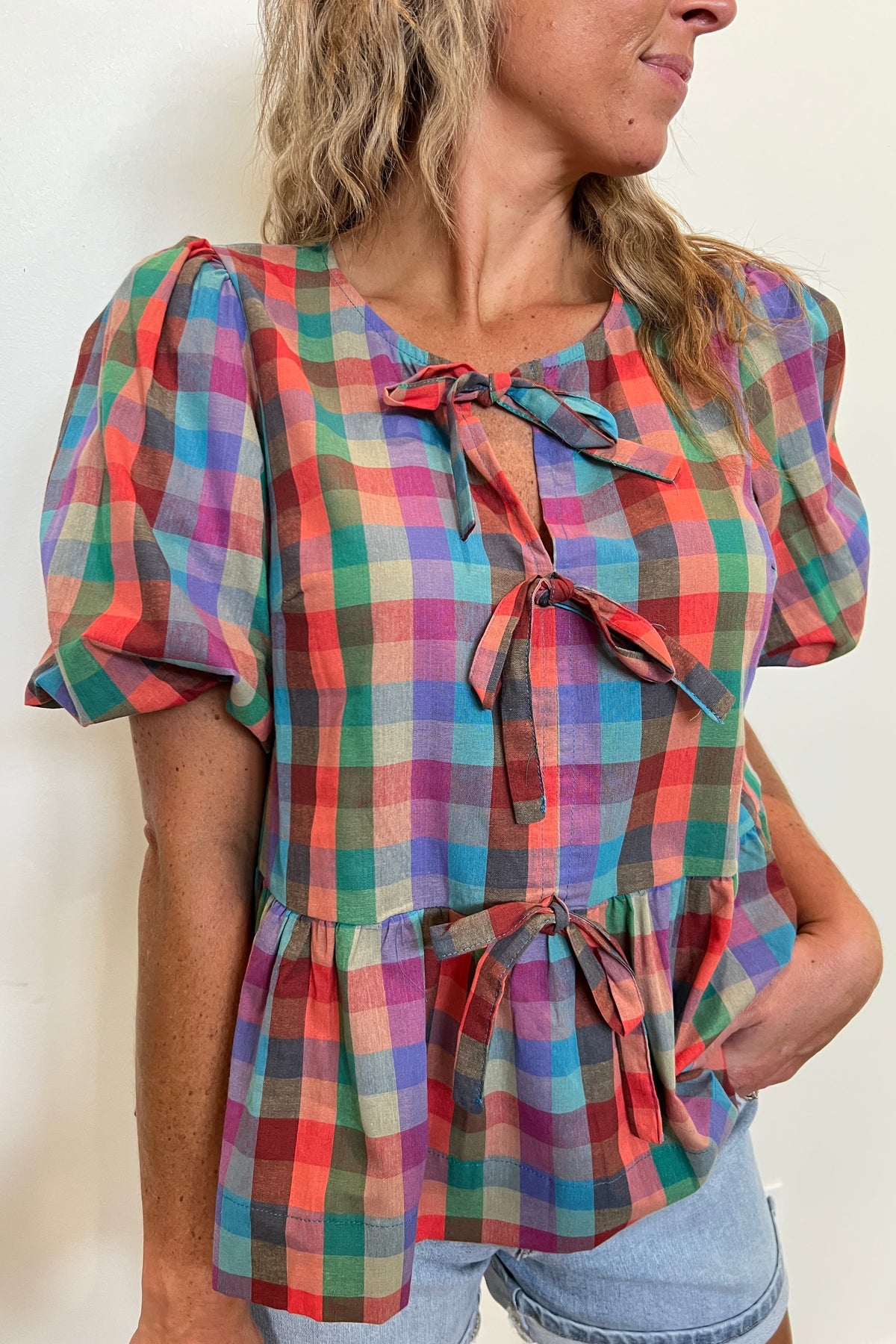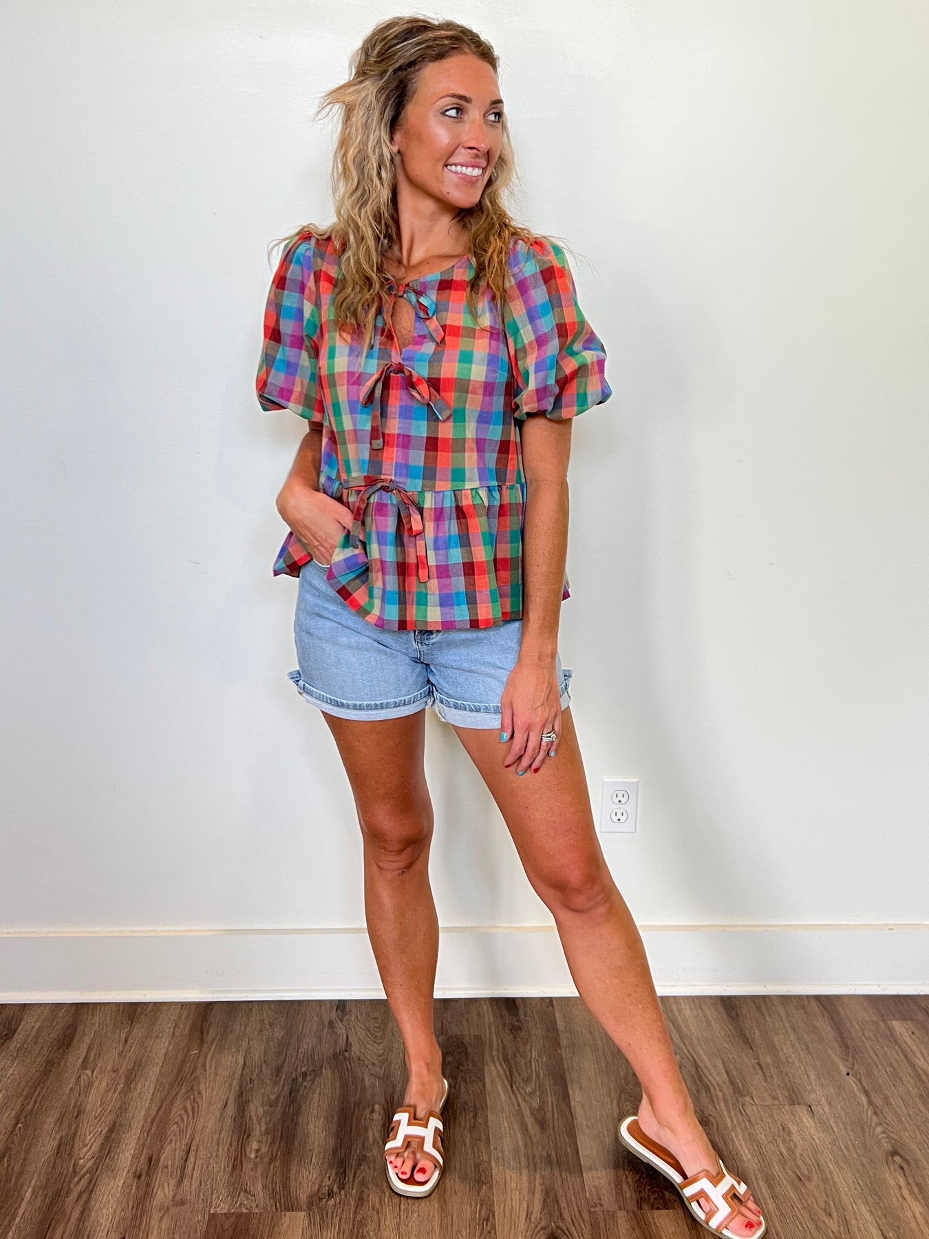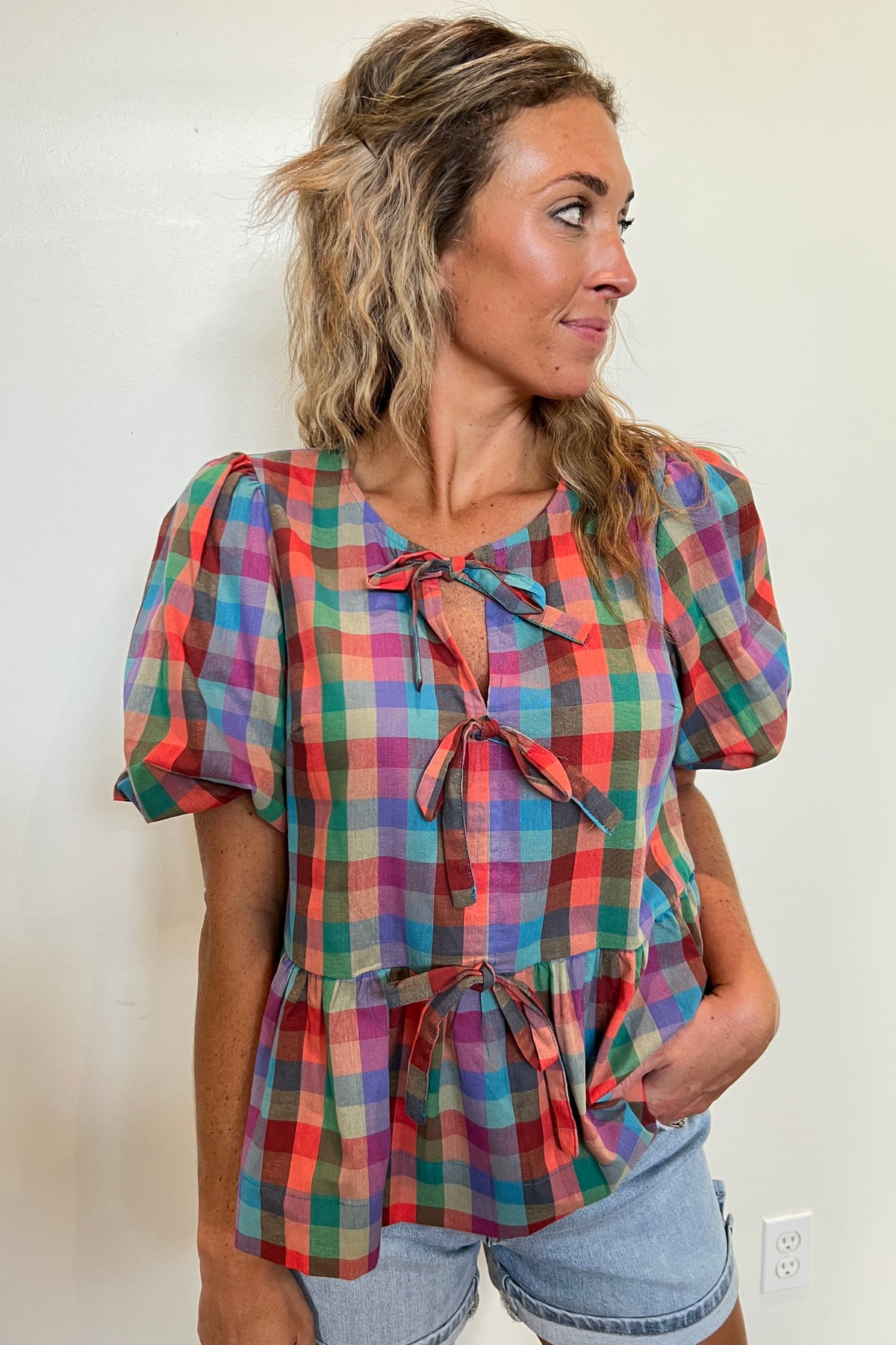 Life In Color Plaid Tie Blouse *FINAL SALE*