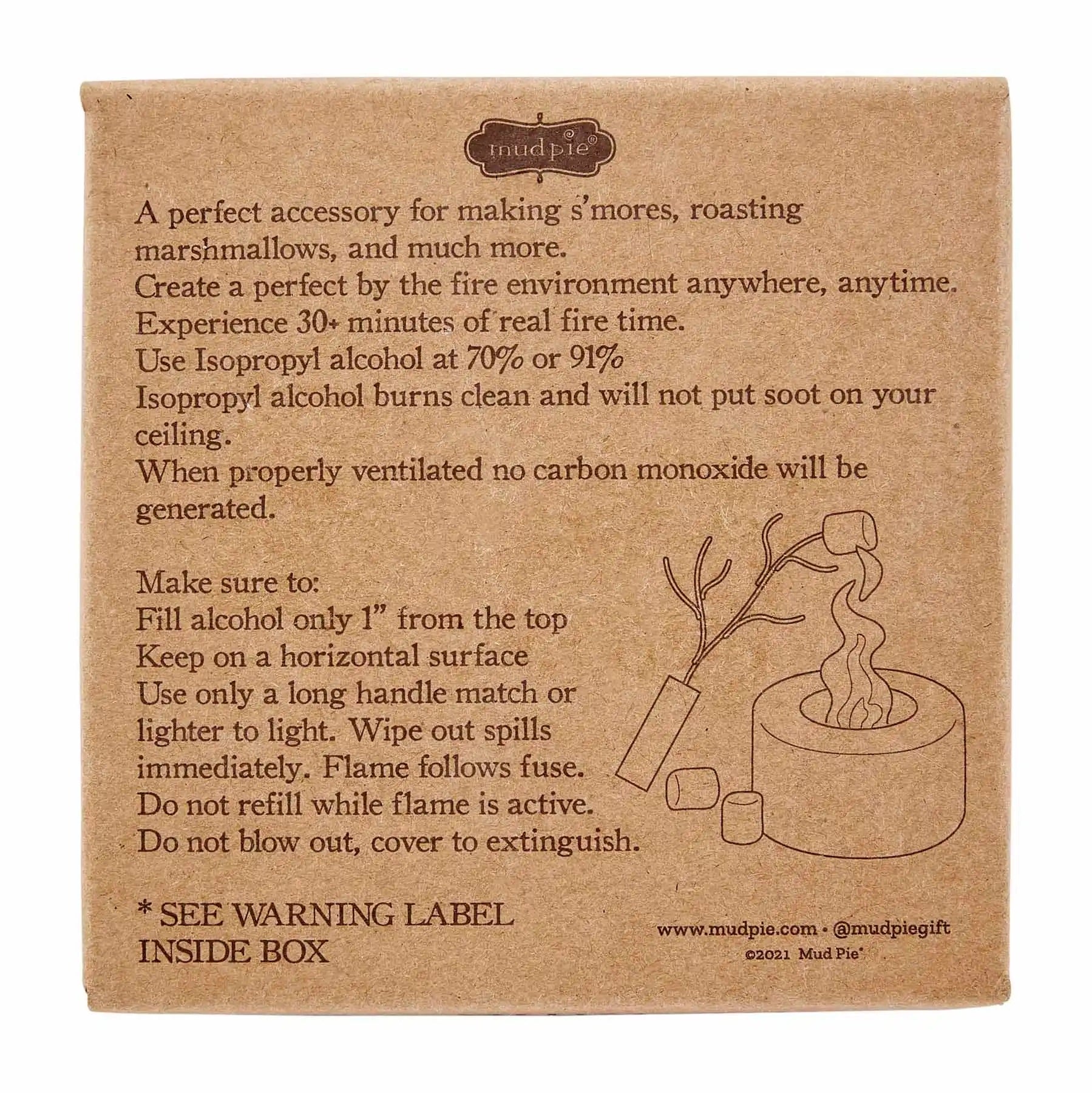 Our marshmallow roasting set is the perfect accessory for making s'mores, roasting marshmallows and more. The two piece set comes with a concrete table top mini fire pit. The fire pit comes with a wood and metal wire roasting skewer. Isopropyl Alcohol fuels the fire. This is a must-have summer accessory - take it with you everywhere from the beach and boats to tailgates and vacations.